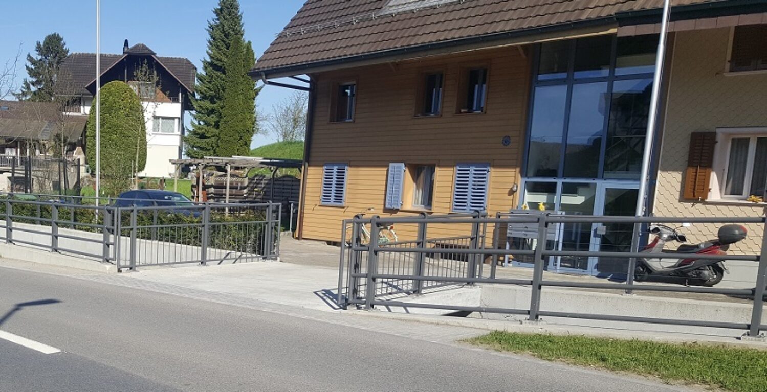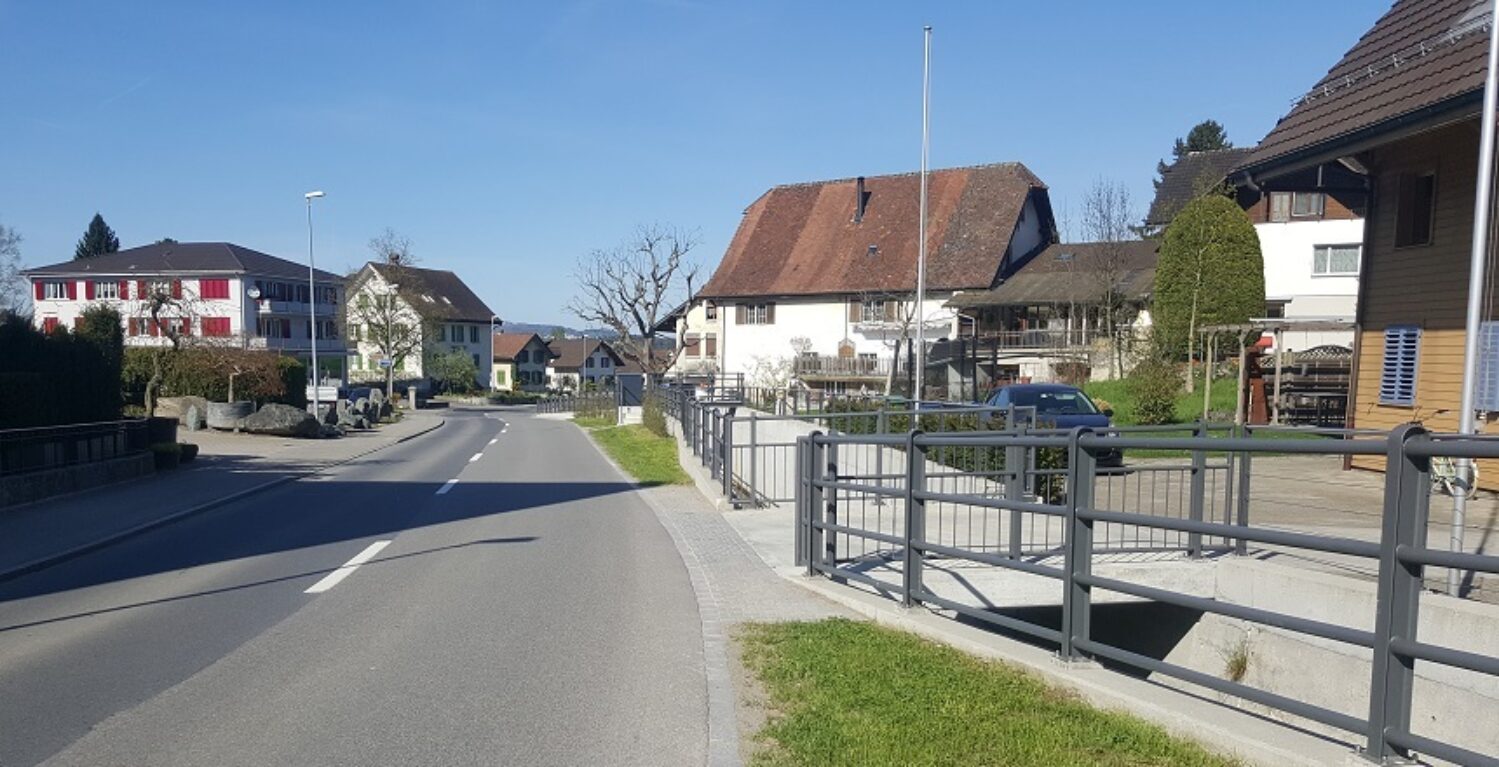 Der Wissenbach fliesst im Bereich des Dorfes Boswil entlang der Kantonsstrasse K 365. Sein Bachbett wurde zum Schutz gegen Hochwasser ausgebaut. Zwischen Strasse und Gewässer entstanden neue Stützmauern und zur Erschliessung der hinter dem Bach angesiedelten Liegenschaften wurden neue Brücken erstellt. Die Mauerkronen und Brückenkonsolen wurden mit Geländern gegen Absturz gesichert. Die Befestigung der Geländer erfolgte mittels Fussplatten und Verbunddübeln. Zum Nachweis der Ausziehfestigkeit der Verankerungen wurde Conzeptra mit der Prüfung der Dübel beauftragt.