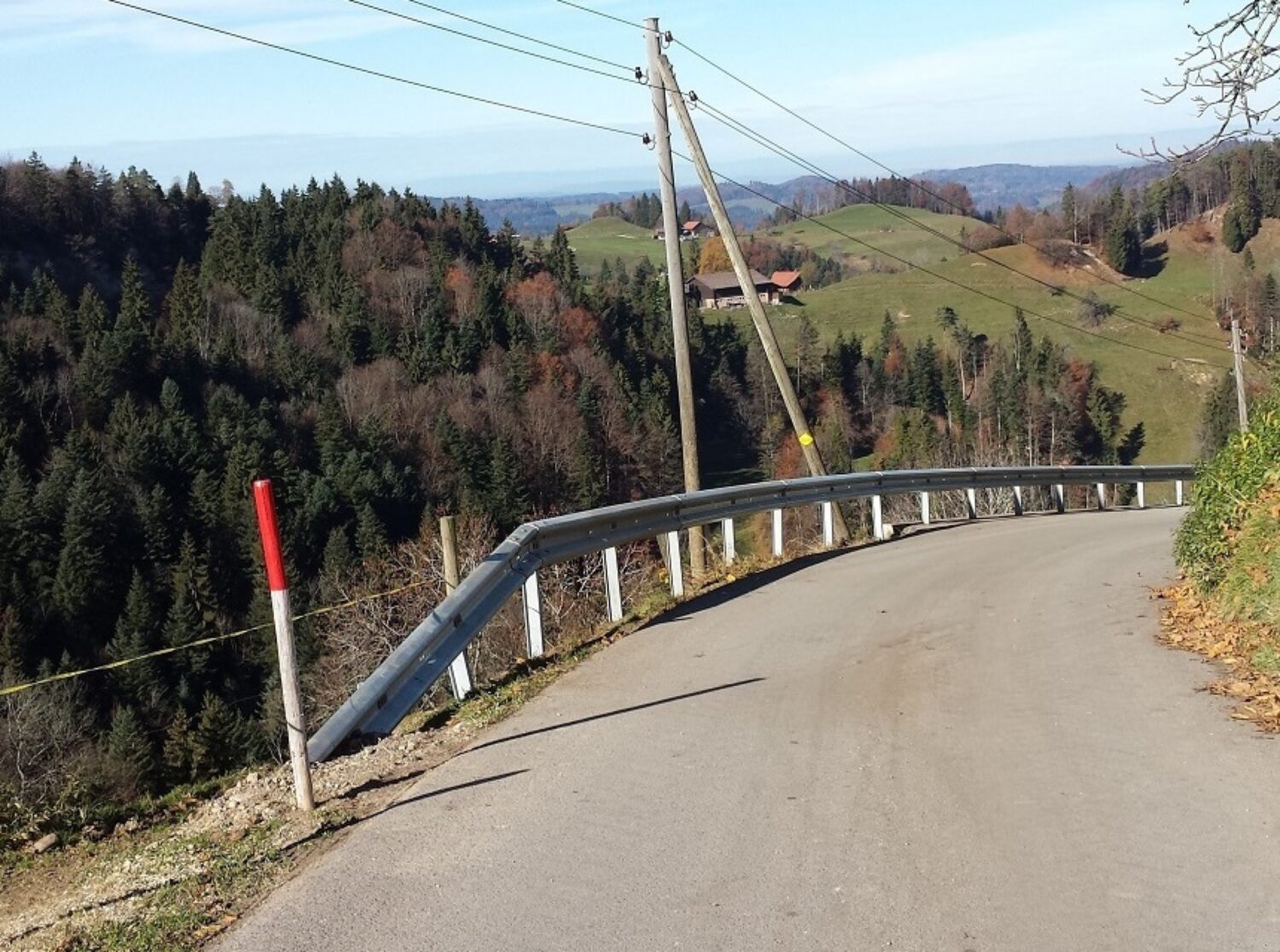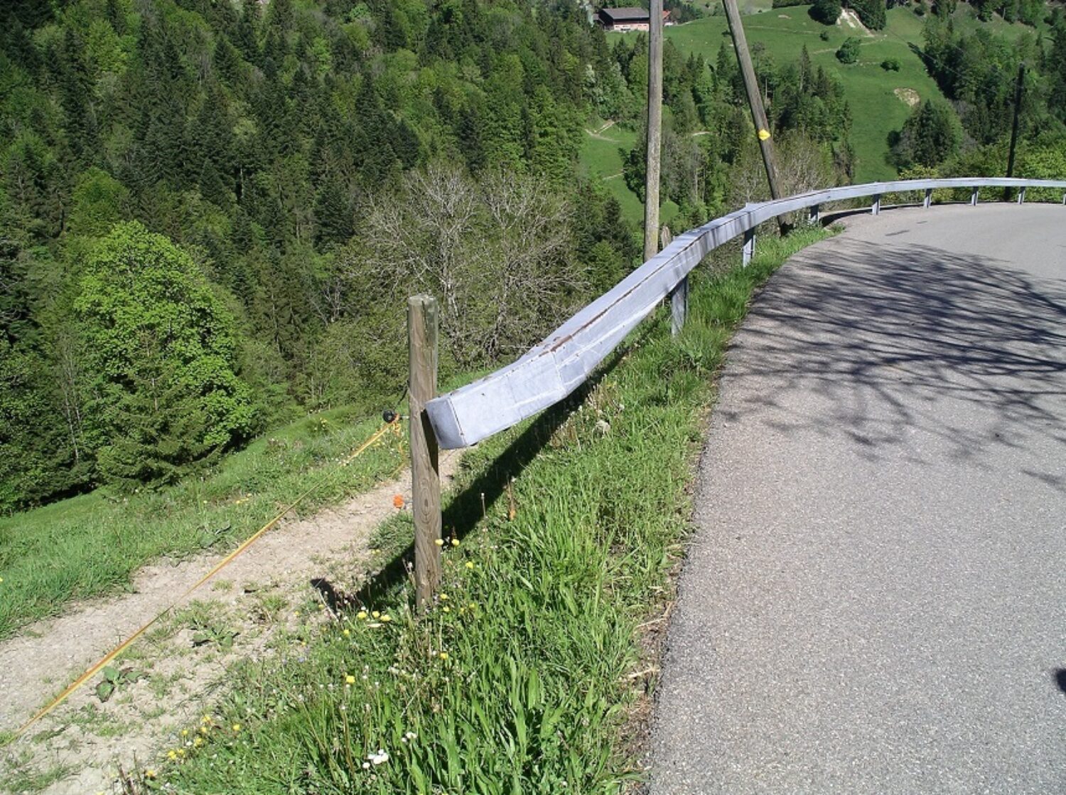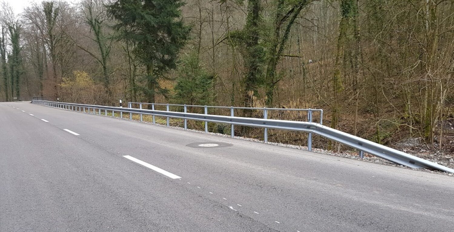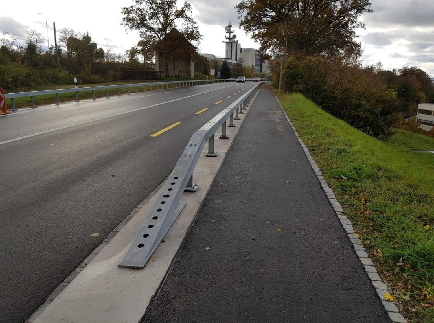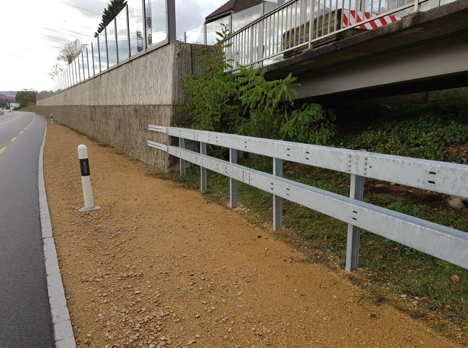 Seit der Ausarbeitung des Auflageprojektes 2010 hatten sich die Parameter der passiven Sicherheit wesentlich verändert. Beispielsweise überschritt der DTV in dieser Zeit die Grenze von 12‘000 Fz/d. Im gleichen Zeitraum änderten die gesetzlichen Grundlagen. Die Inkraftsetzung des neuen Artikels 6a im Schweizerischen Strassenverkehrsgesetz (SVG) am 1. Juli 2013 löste zahlreiche Anpassungen bei den technischen Normen aus. Die Unterstellung der Fahrzeug-Rückhaltesysteme unter das Bauproduktegesetz (BauPG) per 1. Januar 2013 schränkte die anwendbaren Schutzsysteme gegenüber früher ein. Diesen Faktoren wurde im Ausführungsprojekt Rechnung getragen. Der Strassenabschnitt erfüllt nach der Realisierung alle sicherheitstechnischen Anforderungen.