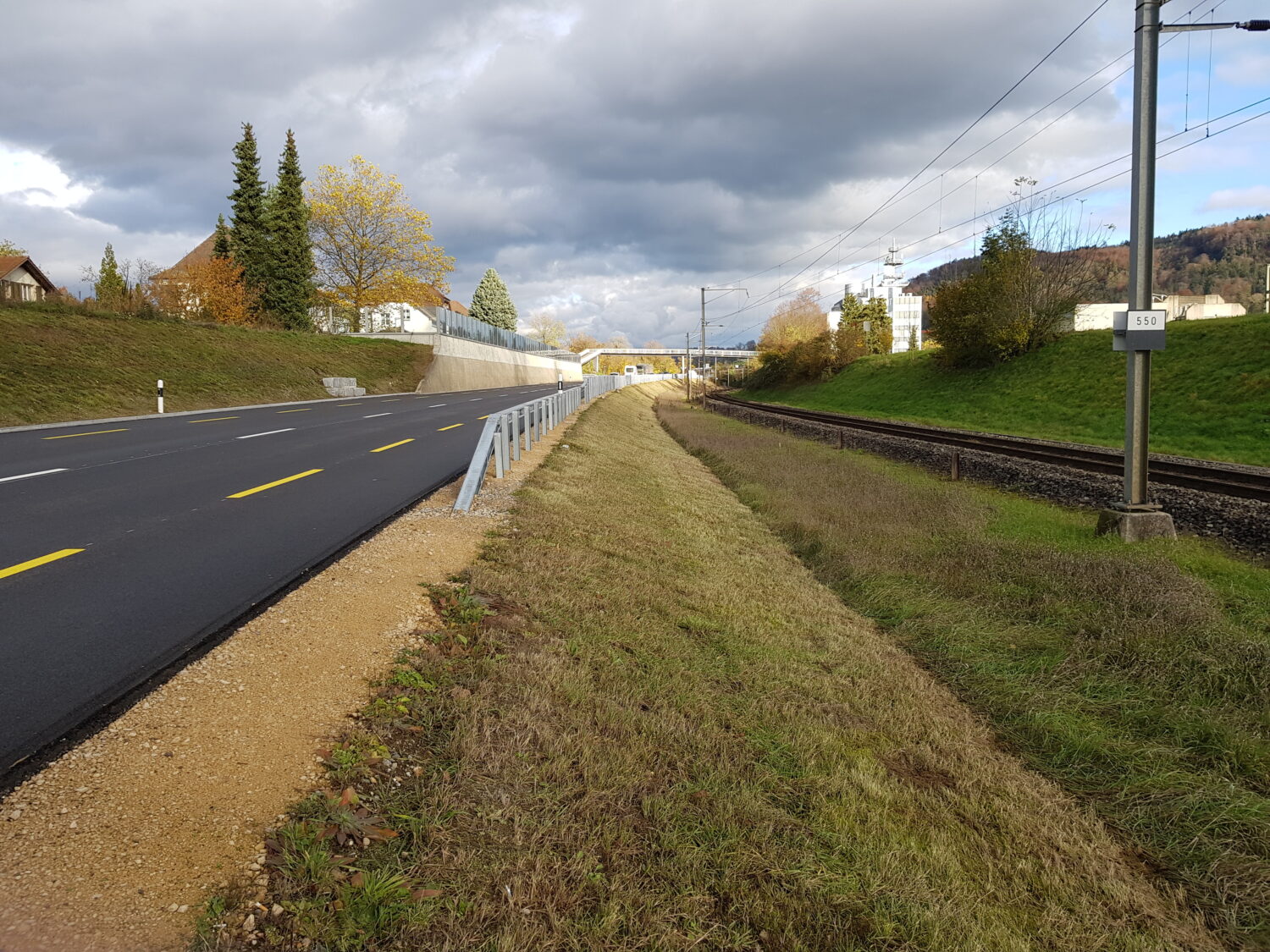 Die Fahrbahnverbreiterung mit infolge der Radstreifen reduzierte den Sicherheitsabstand zwischen Schiene und Strassen. Durch Erhöhung der Aufhaltestufe von bisher N2 auf neu H1 konnten die sicherheitstechnischen Anforderungen erfüllt werden.