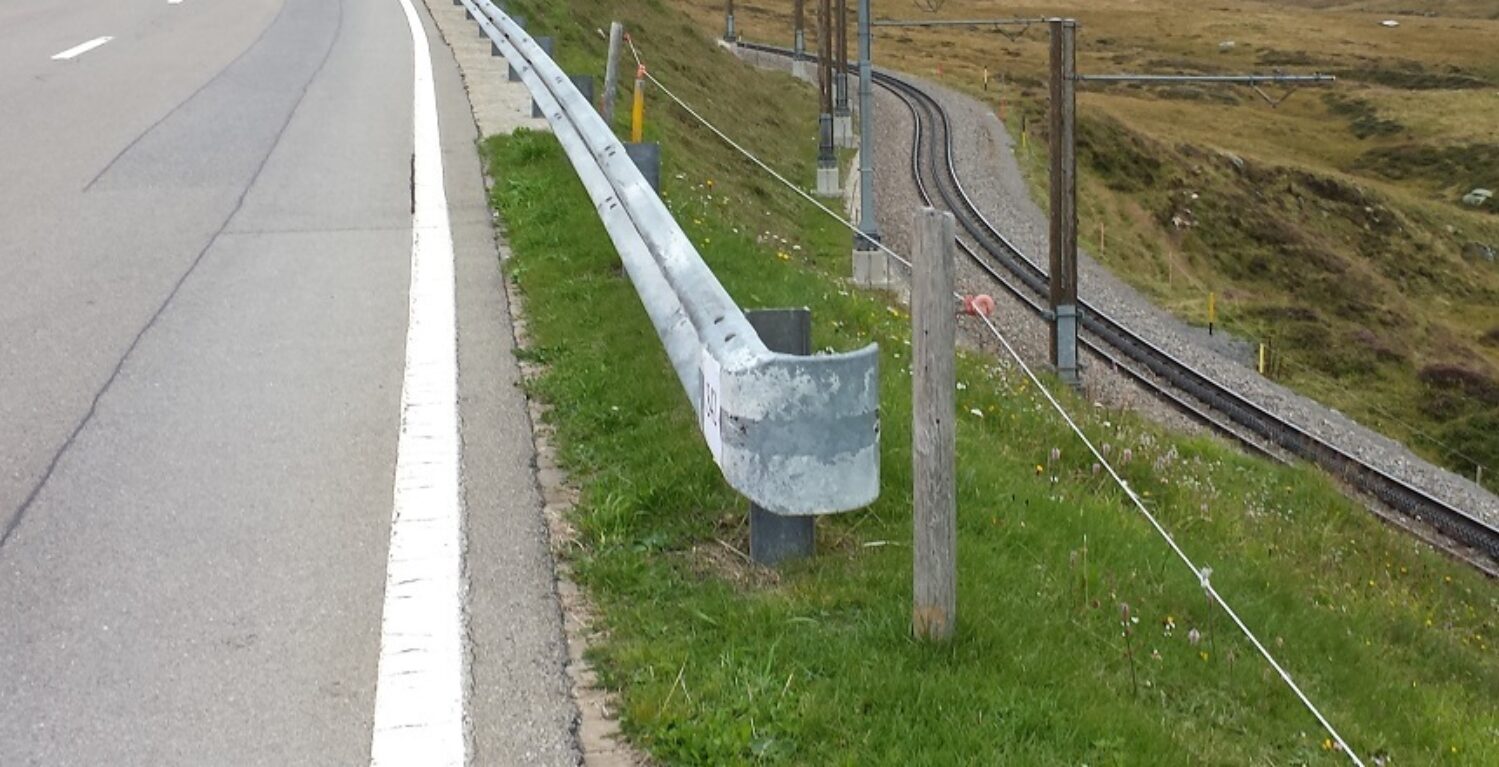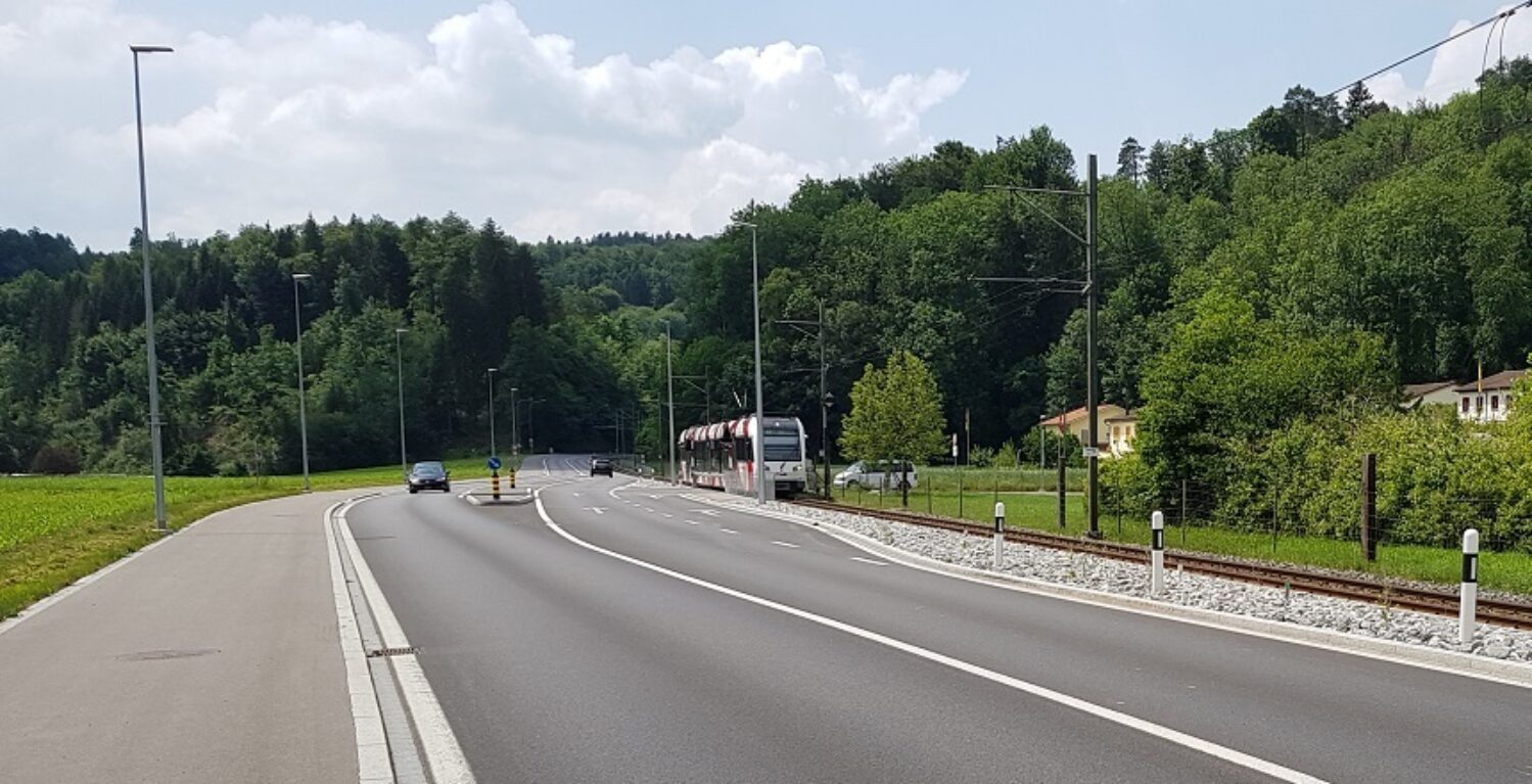 Im Rahmen einer sicherheitstechnischen Analyse wurden die erforderlichen Sicherheitsabstände zwischen Schiene und Strasse mit und ohne Schutzeinrichtung berechnet. Daraus entstanden verschiedene Normalprofilvarianten für das Ausbauprojekt der Strasse. Gleichzeitig wurden die bestehenden Schutz- und Leiteinrichtungen auf ihre Konformität überprüft.